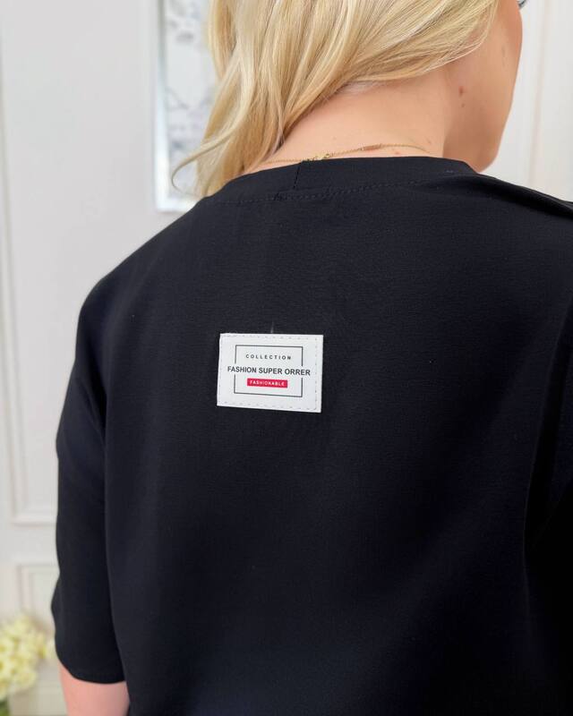 Модний костюм із трендовими декоративними вставками, які створюють ефект багатошаровості та візуально підкреслюють силует.