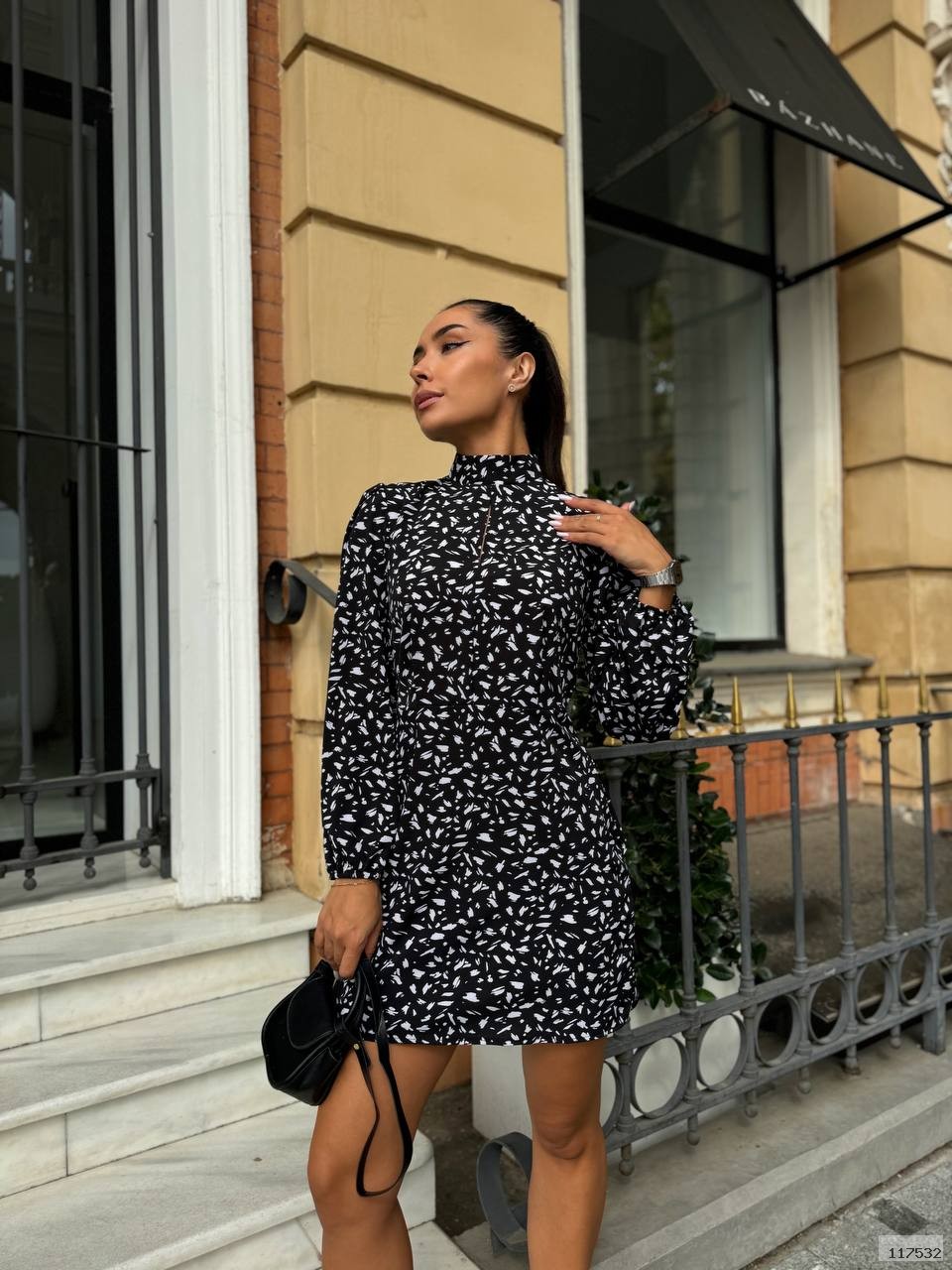 Стильна сукня міні. Розріз на грудях Рукава на резинці Ззаду потаємна змійка По бокам кишені