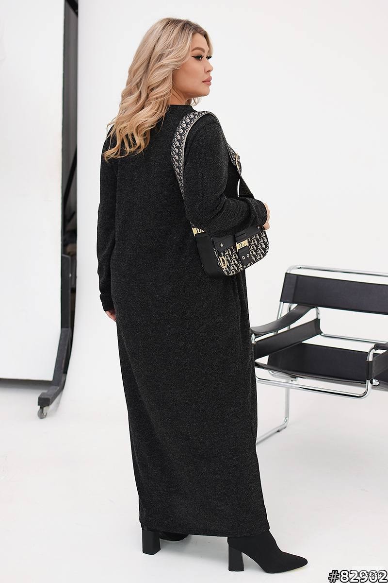 Сукня з довгим рукавом і вільним кроєм, виготовлена з теплої трикотажної тканини, яка чудово підходить для холодної пори року. Має довжину максі та лаконічний дизайн, що робить її універсальною для різних образів. Сукня доступна в кількох кольорах, таких як коричневий, чорний та сірий, легко комбінується з аксесуарами і підходить як для повсякденного, так і для святкового стилю.