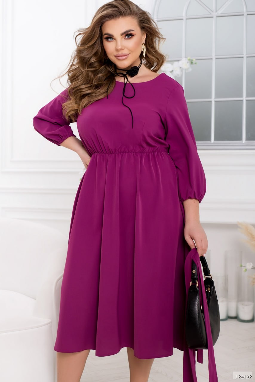 Ця однотонна сукня міді з круглою горловиною привертає увагу своєю простотою та елегантністю. Рукава 7/8 з гумкою надають зручність та додають оригінальність образу. Відрізна талія із гумкою, яку можна підкреслити входячим пояском, робить образ акцентованим та стильним. Ця сукня стане чудовим вибором для різних заходів, де важливо поєднати елегантність та комфорт.