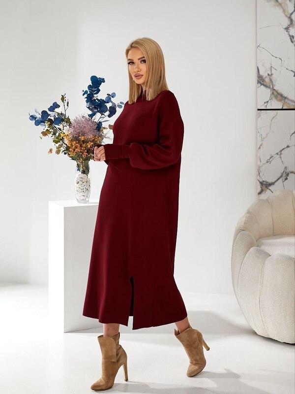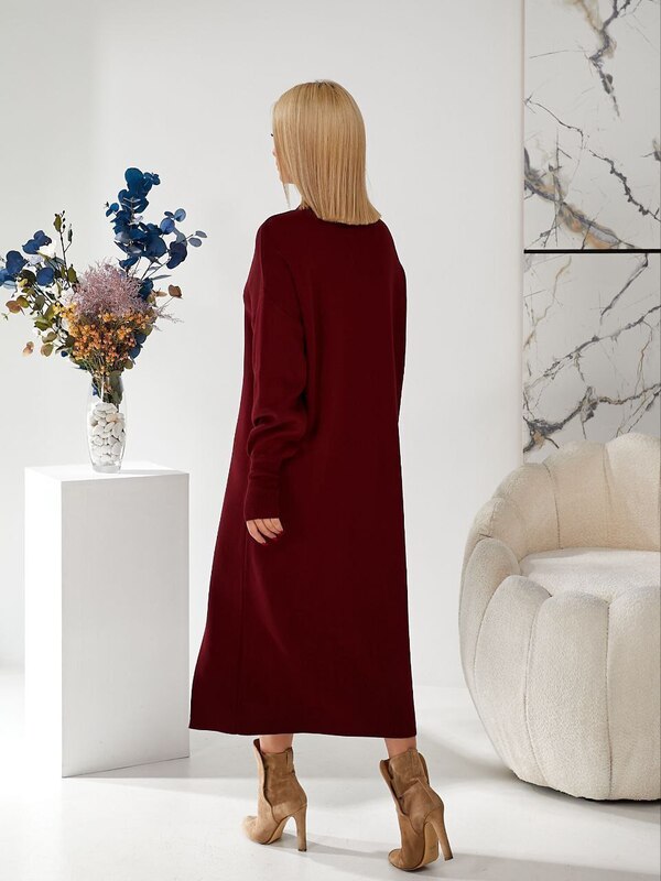 Сукня в стилі оверсайз. На рукавах стильні розрізи для пальців. В’язка добре тягнеться