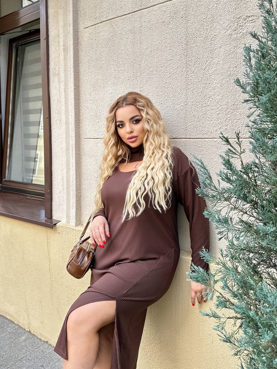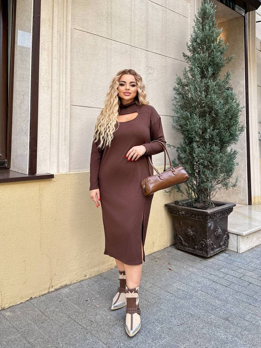 Сукня йде оверсайс, на грудях виріз який підкреслює чарівність ваших форм, розріз зліва довжина 35 см,плече приспущене