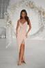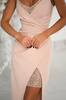 Верх моделі — на запах, м’яко підкреслює декольте, а глітерна мереживна вставка додає образу ефектного сяйва.