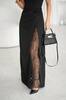 Елегантна сукня з гладкої костюмної тканини з розкішною мереживною вставкою, прикрашеною глітером.
