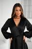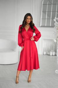 Глибоке V-подібне декольте в поєднанні із запахом м’яко акцентує лінію талії, а пояс додає силуету витонченості.