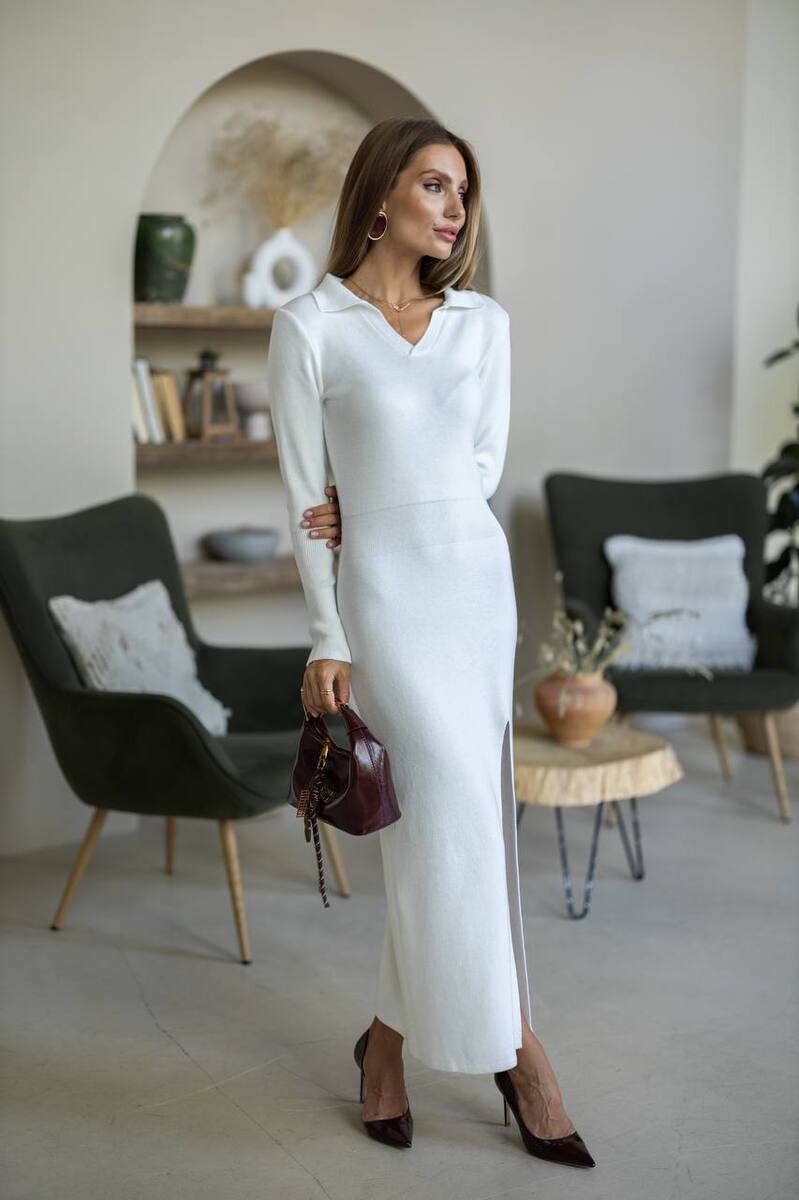Лаконічна і жіночна сукня з м'якого бавовняного трикотажу з виразним коміром у стилі поло. Акуратний розріз додає легкості руху та робить силует більш витонченим. Матеріал комфортно прилягає до тіла, підкреслюючи природні лінії фігури та створюючи відчуття м'якості та затишку.