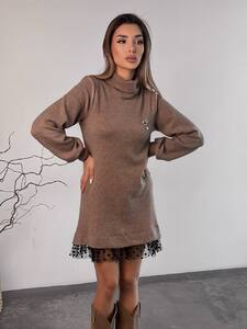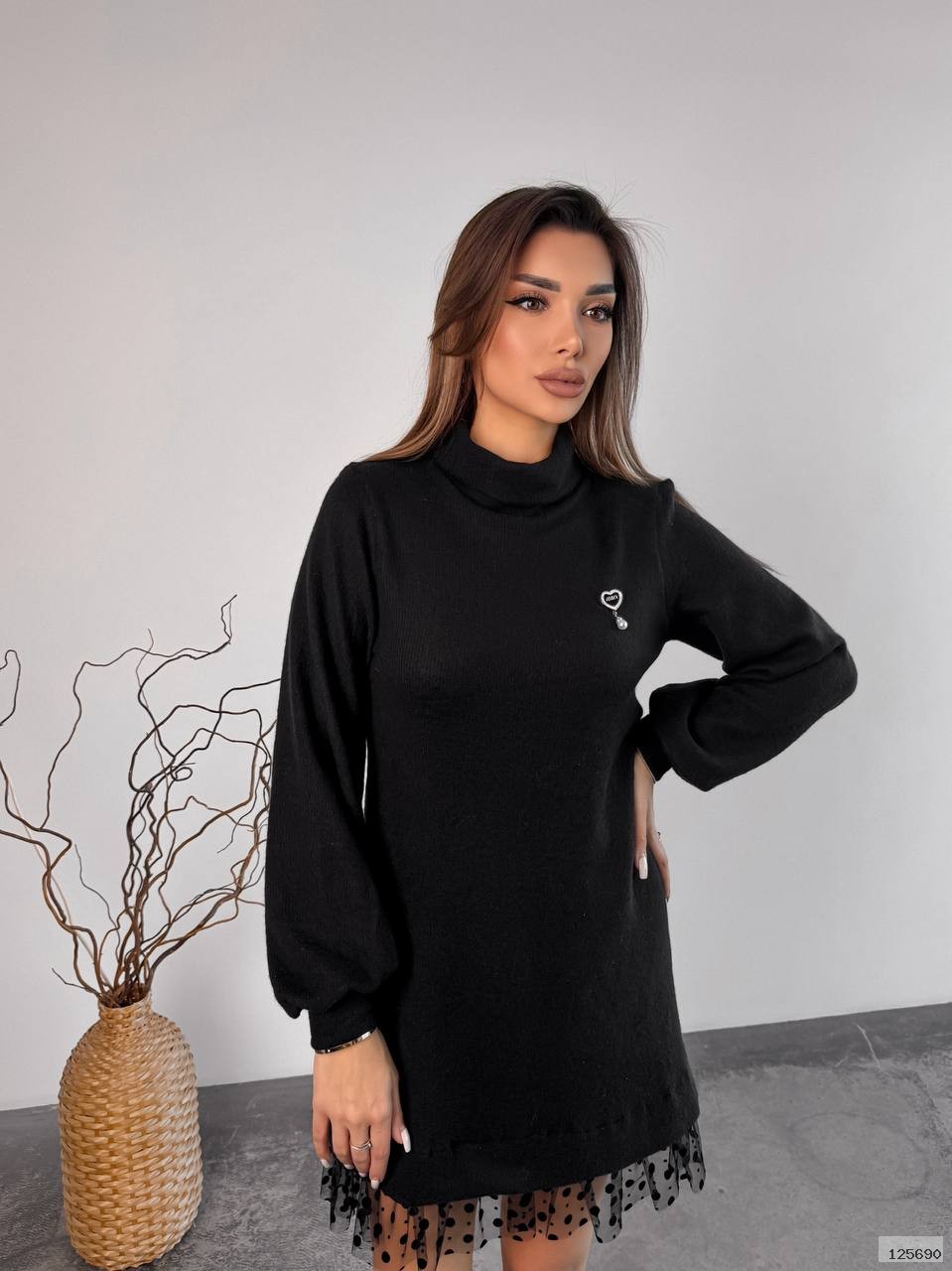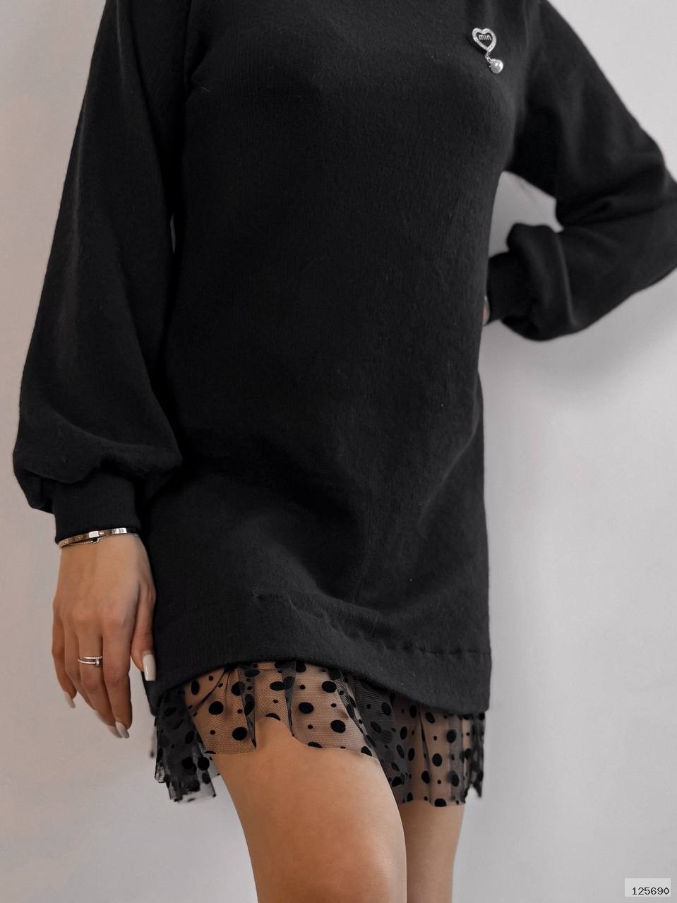 Тепленька сукня із якісноі ангори з цікавою вставкою з фатину. Прикраса в комплекті