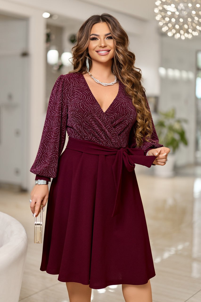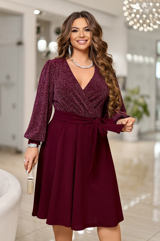 Елегантне жіноче плаття, виконане з кріп дайвінгу (тягнеться) з люрексом. Перед сукні з імітацією запаху. До сукні додається знімний пояс із основної тканини. У такій сукні будь-яка жінка зможе відчути себе справжньої леді та королевою вечора, ця сукня здатна надати жінці ніжності, легкості та елегантності.
