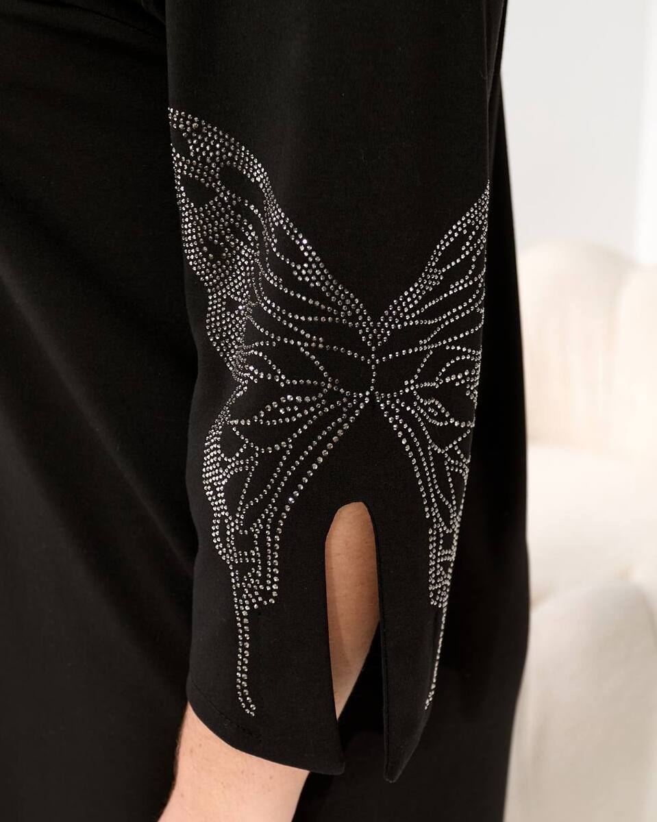 Головна особливість цього виробу — ефектний та привабливий декор: великий, сяючий мотив метелика з безлічі стразів, що додає образу розкоші та вишуканості!