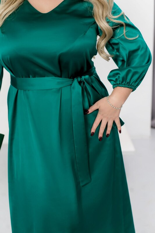 Святкова максі-сукня з шовку, створена для особливих моментів та незабутніх свят, зокрема для зустрічі Нового року. Її елегантний дизайн підкреслює вашу витонченість та жіночність. Зручні рукави три чверті на гумці надають практичності, а неглибокий V-подібний виріз горловини створює граціозний акцент. Акуратні виточки на грудях забезпечують ідеальну посадку, а текстильний пояс, що входить в комплект, дозволяє підкреслити талію. Спинка прикрашена витонченим швом вздовж усієї довжини.