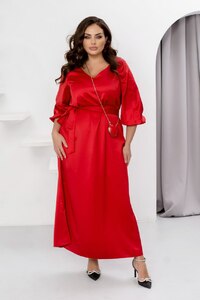 Святкова максі-сукня з шовку, створена для особливих моментів та незабутніх свят, зокрема для зустрічі Нового року. Її елегантний дизайн підкреслює вашу витонченість та жіночність. Зручні рукави три чверті на гумці надають практичності, а неглибокий V-подібний виріз горловини створює граціозний акцент. Акуратні виточки на грудях забезпечують ідеальну посадку, а текстильний пояс, що входить в комплект, дозволяє підкреслити талію. Спинка прикрашена витонченим швом вздовж усієї довжини.