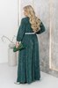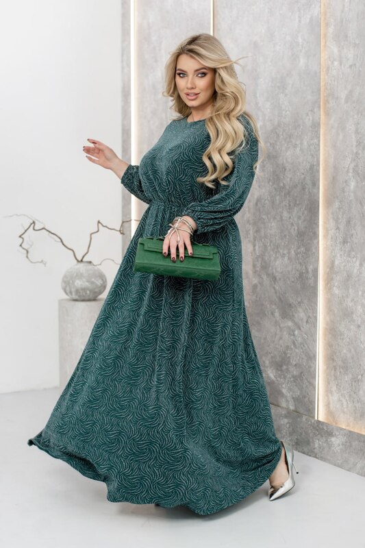 Довга сукня з мерехтливим дизайном — втілення ніжності, жіночності та святкової елегантності. Півкруглий виріз горловини та відрізна лінія талії підкреслюють фігуру, а спадаючі плісовані оборки додають легкості й витонченого руху. Рукави довжиною 3/4 з м’якими резинками на зап’ястках створюють об’єм і делікатний акцент. Вертикальні виточки формують красивий силует, а поясок із комплекту дозволяє обрамити талію, додаючи завершеності образу. Ця сукня м’яко виблискує при кожному русі — ідеальний вибір для особливих моментів, коли хочеться сяяти по-справжньому. Срібний пояс входить в комплект.