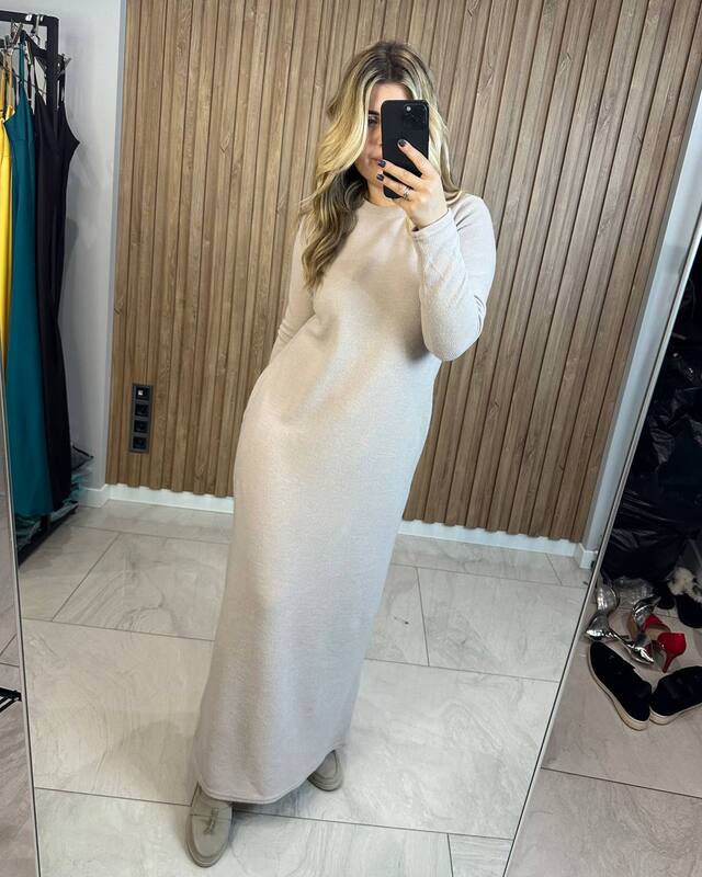 Ніжна та елегантна сукня, виконана з м’якої ангори, яка приємно огортає тіло та забезпечує комфорт у прохолодну пору року. Поверхня: м'яка, ворсиста, дуже
