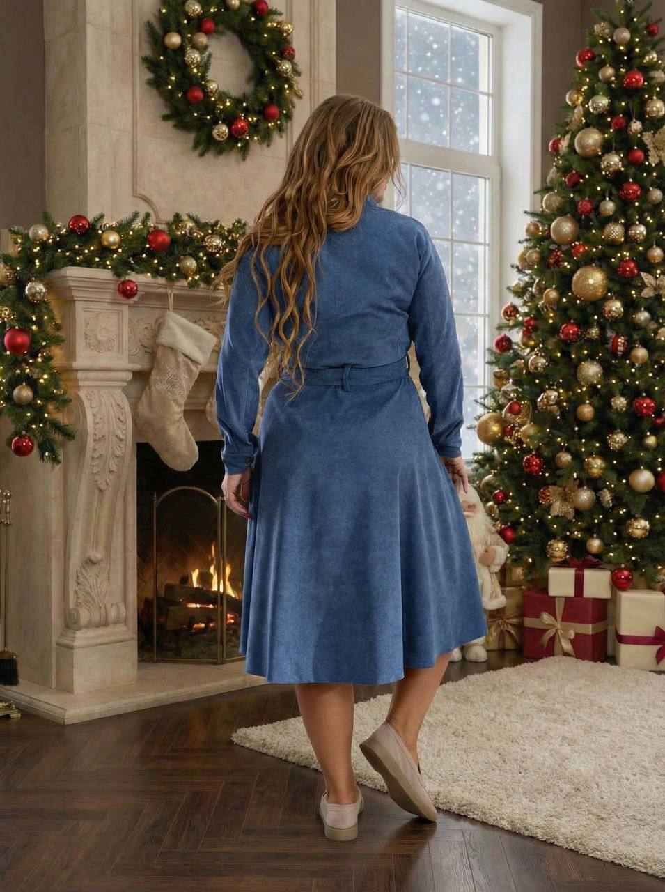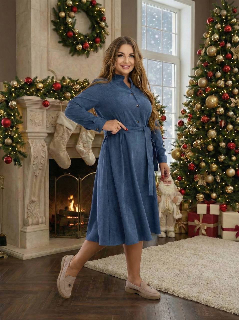 Елегантна сукня довжини міді, виконана з м’якого мікровельвету, який приємний до тіла та має делікатну текстуру. Матеріал чудово тримає форму, підкреслює силует і водночас залишається комфортним у щоденному носінні.