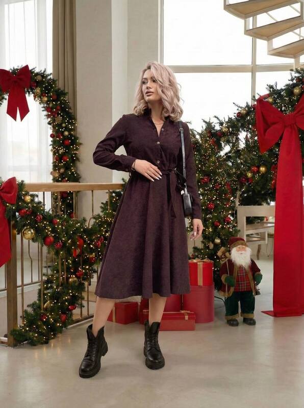 Елегантна сукня довжини міді, виконана з м’якого мікровельвету, який приємний до тіла та має делікатну текстуру. Матеріал чудово тримає форму, підкреслює силует і водночас залишається комфортним у щоденному носінні.