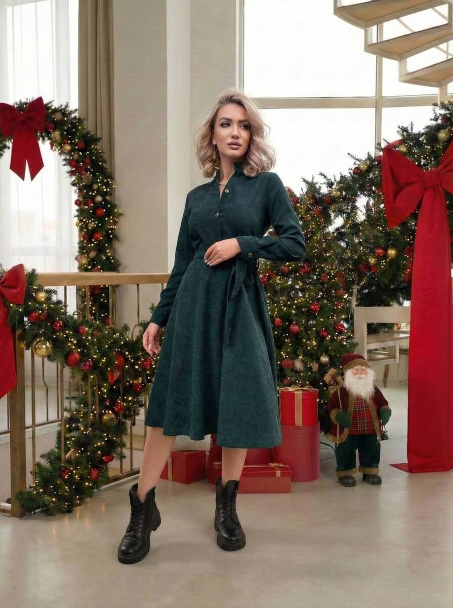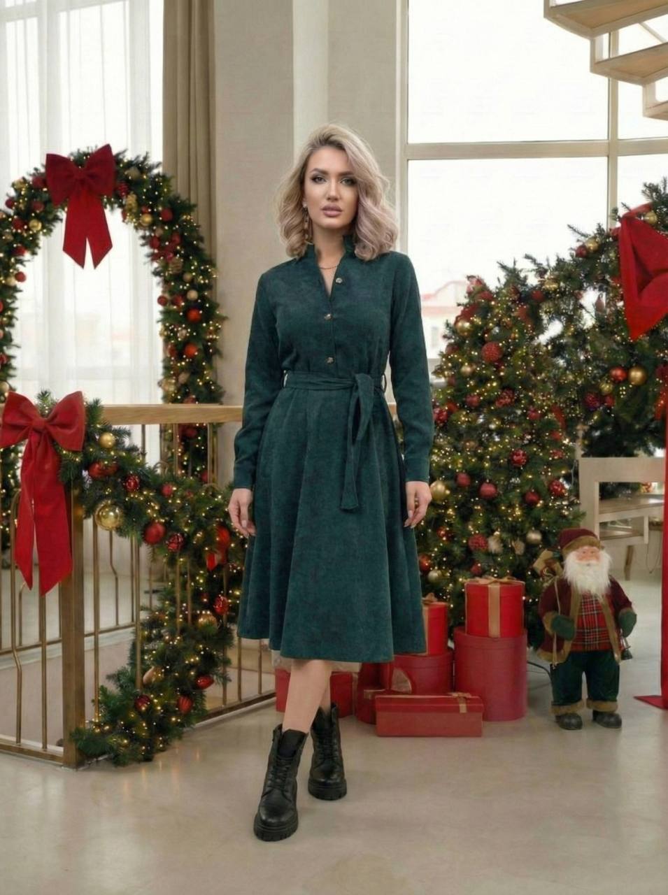 Елегантна сукня довжини міді, виконана з м’якого мікровельвету, який приємний до тіла та має делікатну текстуру. Матеріал чудово тримає форму, підкреслює силует і водночас залишається комфортним у щоденному носінні.