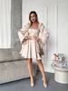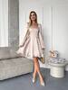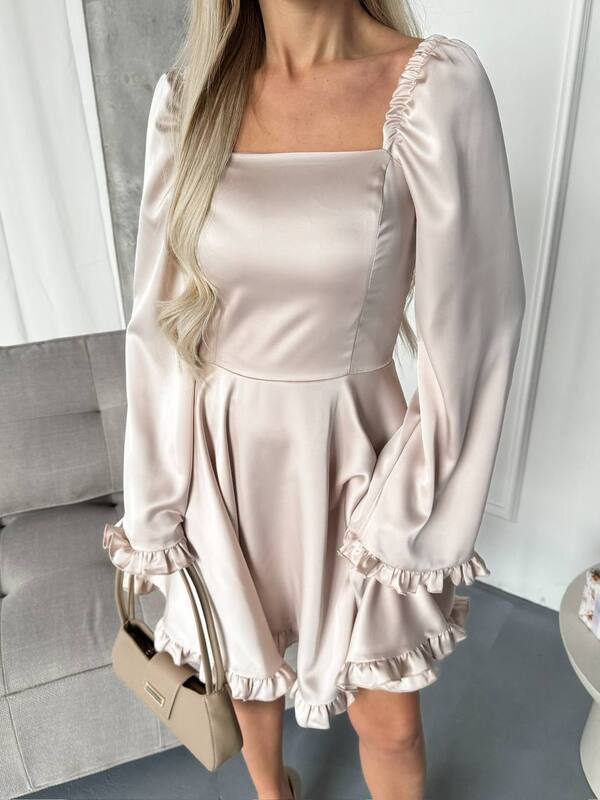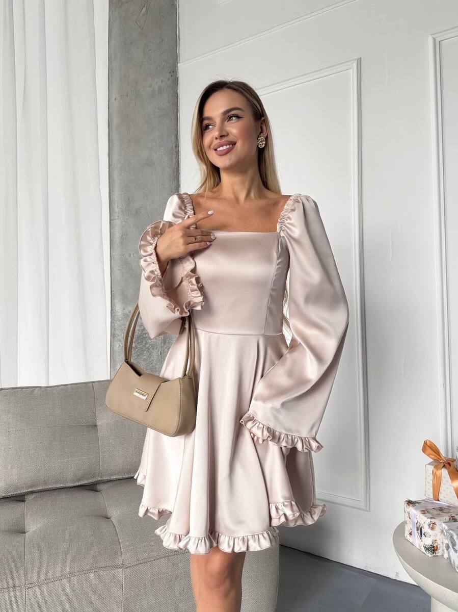 Стильна сукня міні, що поєднує в собі елегантність та легкість. Модель виконана з щільної, якісної тканини, яка не просвічується та чудово тримає форму. Прямий квадратний виріз підкреслює лінію плечей, а об’ємні рукави зі зібраними манжетами та воланами додають ніжності й романтичності.