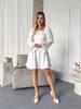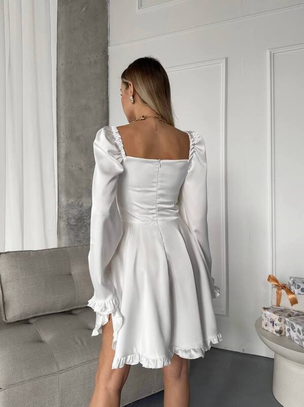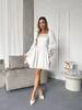 Стильна сукня міні, що поєднує в собі елегантність та легкість. Модель виконана з щільної, якісної тканини, яка не просвічується та чудово тримає форму. Прямий квадратний виріз підкреслює лінію плечей, а об’ємні рукави зі зібраними манжетами та воланами додають ніжності й романтичності.