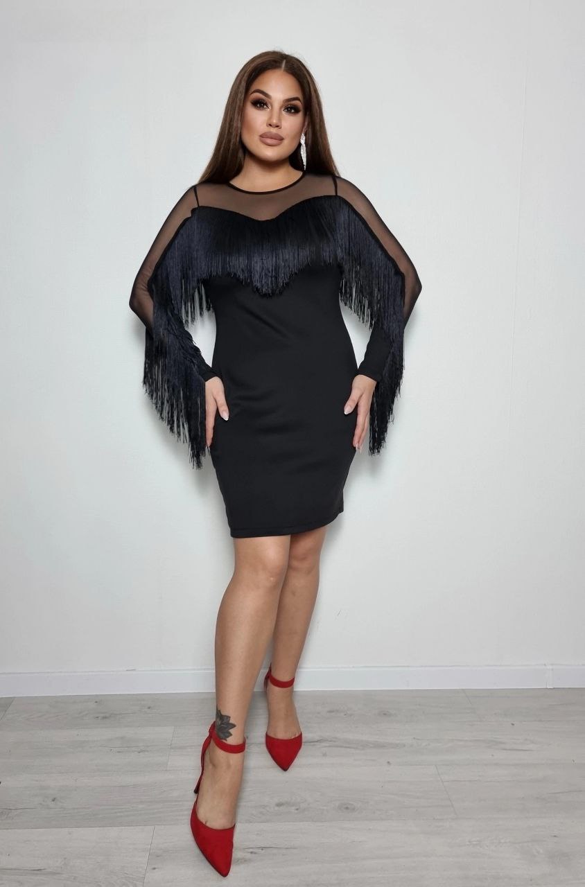 Сукня з бахромою — справжній вау-варіант для тих, хто хоче виглядати ефектно та привертати увагу. Бахрома красиво рухається при ходьбі, створюючи легку динаміку та роблячи образ святковим і стильним.