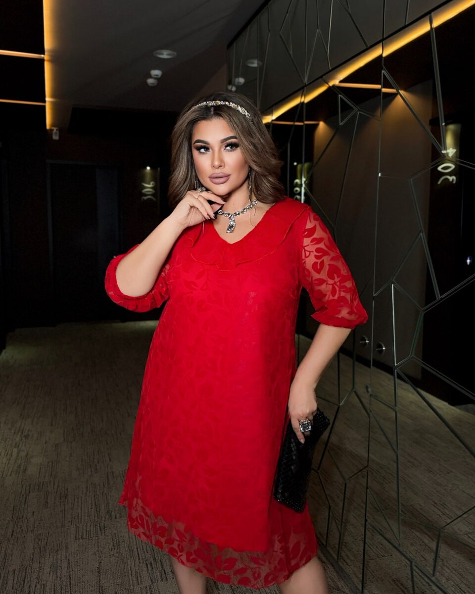 жіноче плаття - розкішний образ для жінок plus size. Ідеально задає правильні пропорції та приховує недосконалість фігури. Горловина сукні V-подібної форми, що дуже красиво підкреслює груди. Спинка із середнім швом. Універсальна і практична сукня довжиною нижче коліна.