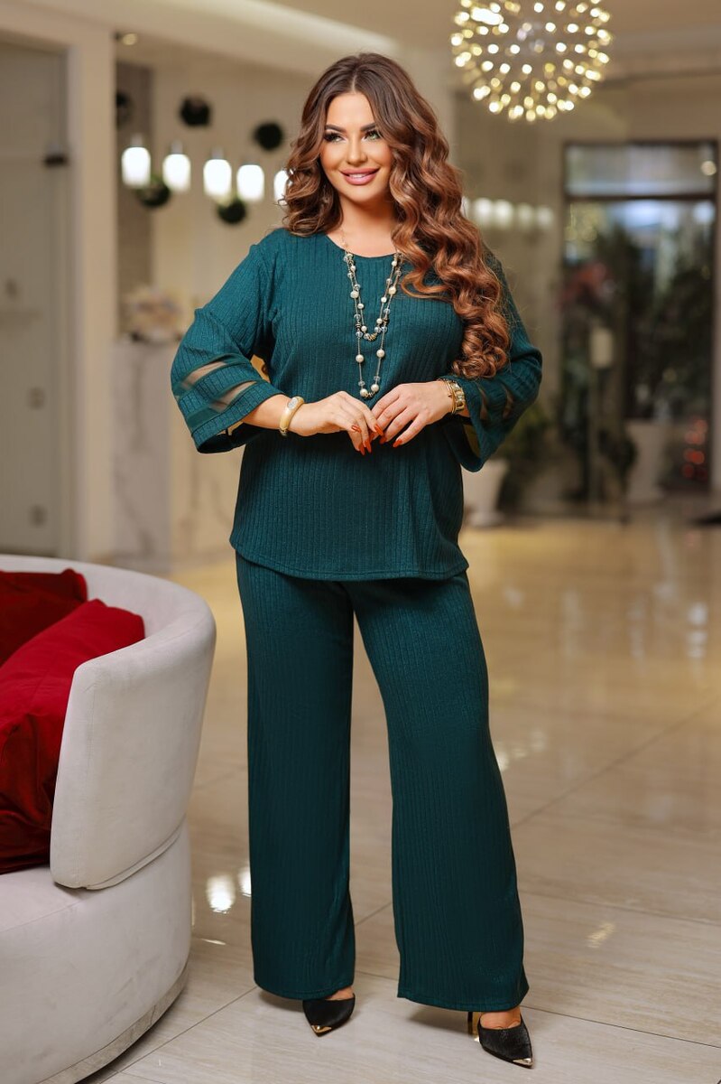Без кишень, рукав спущений. Пояс на резинці. Цей комплект - знахідка для сучасних жінок: він однаково гарний в діловій атмосфері, на святі або в неформальній обстановці. Стиль, комфорт та бездоганний смак – все в одному образі.