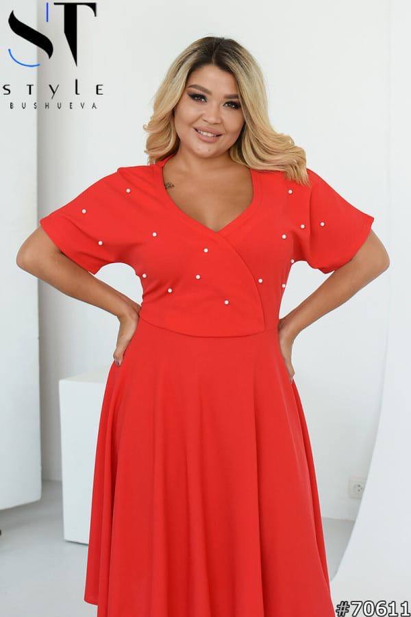 Ефектна сукня чудово тягнеться, красиво облягає фігуру та не просвічується. Модель декорована перлинними кліпсами, що додають образу розкоші та святкового настрою.