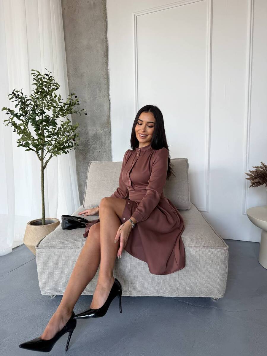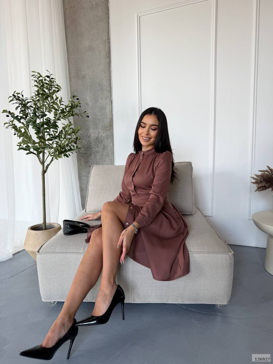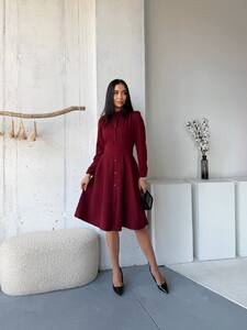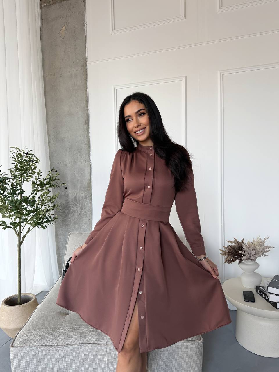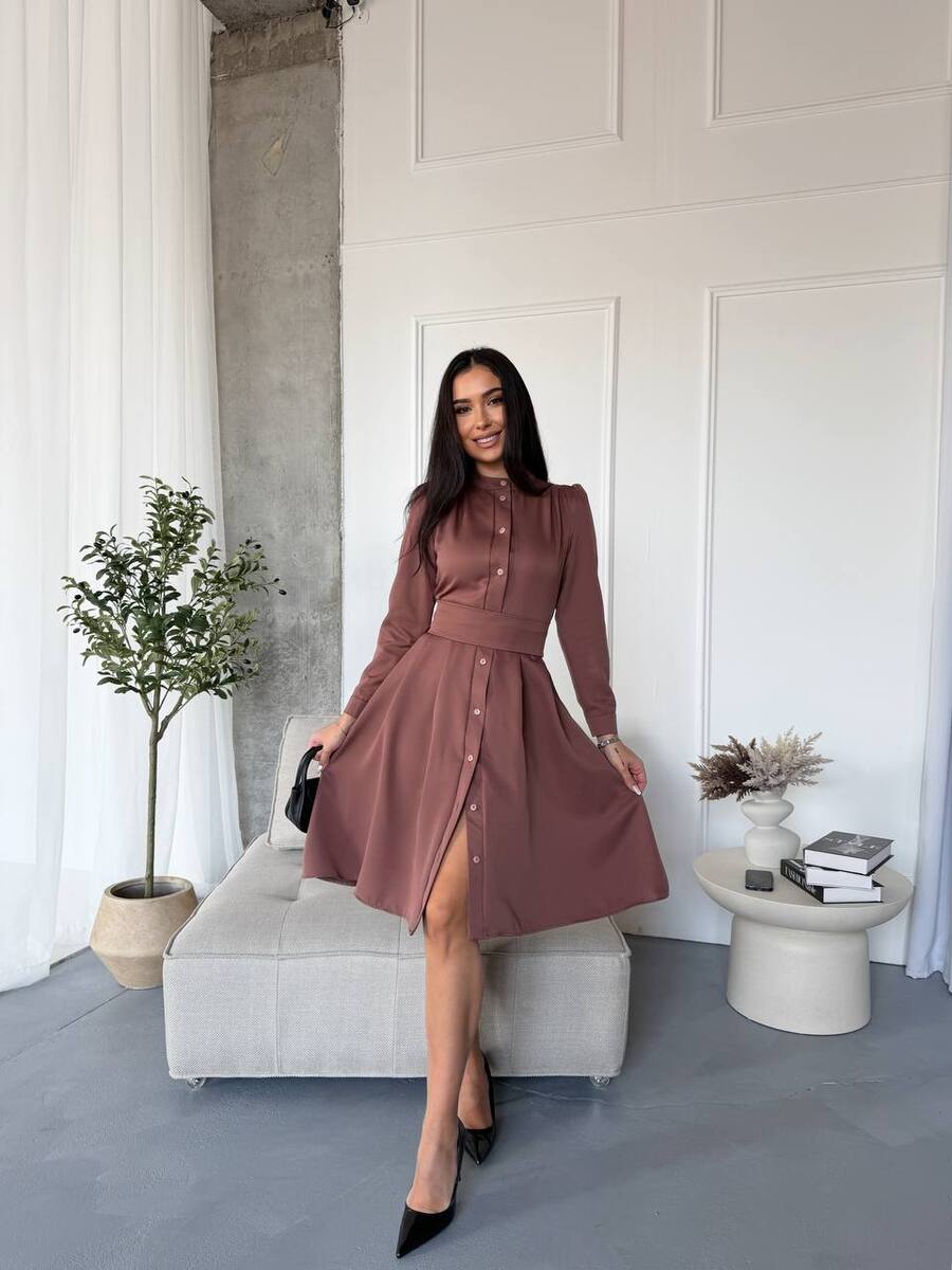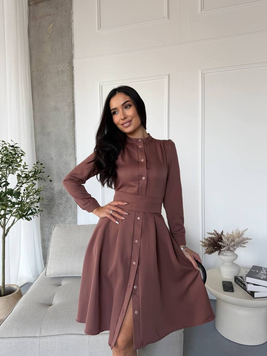 Сукня міді в трендових кольорах. Спереді зі зборками По бокам кишені Ґудзики функціональні на всю довжину виробу Пояс в комплекті, застібка ґудзики