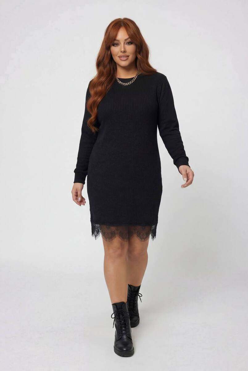 Сукня напівприталеного силуету, зі вставками з мережива понизу. Стильно і практично