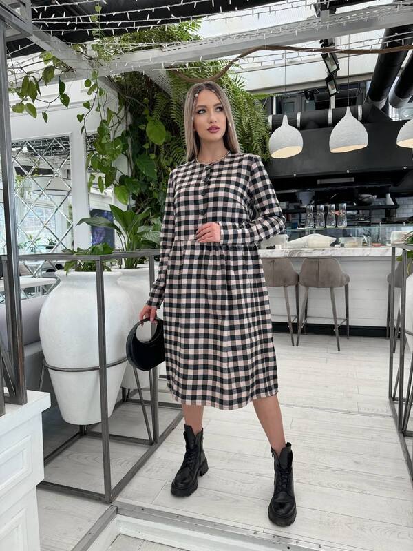 Стильна сукня в клітинку — ідеальний варіант для комфортних і модних образів у прохолодну пору. Модель виконана з коттону з легкою байкою, тому тканина м’яка, приємна до тіла та добре зберігає тепло