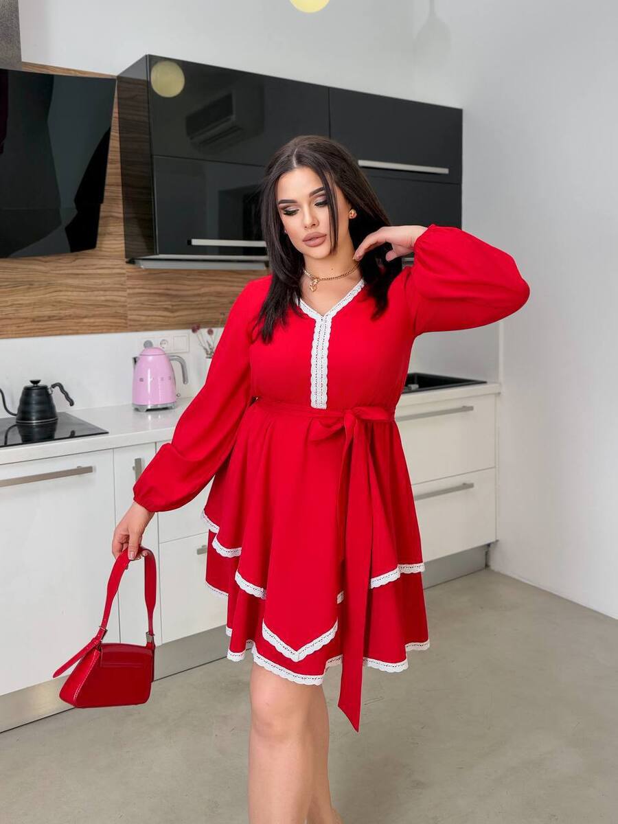 Ця стильна сукня з воланами і декоративними білими вставками стане чудовим вибором для будь-якого випадку. Вона має вільний крій, що підкреслює комфорт та легкість. Оригінальні рюші на плечах додають образу романтичності, а білі мереживні акценти по краю надають сукні витонченого вигляду. Довжина сукні вище коліна, що робить її ідеальним варіантом як для повсякденних прогулянок, так і для особливих подій. Поєднується як з класичними туфлями, так і з більш зручним взуттям.