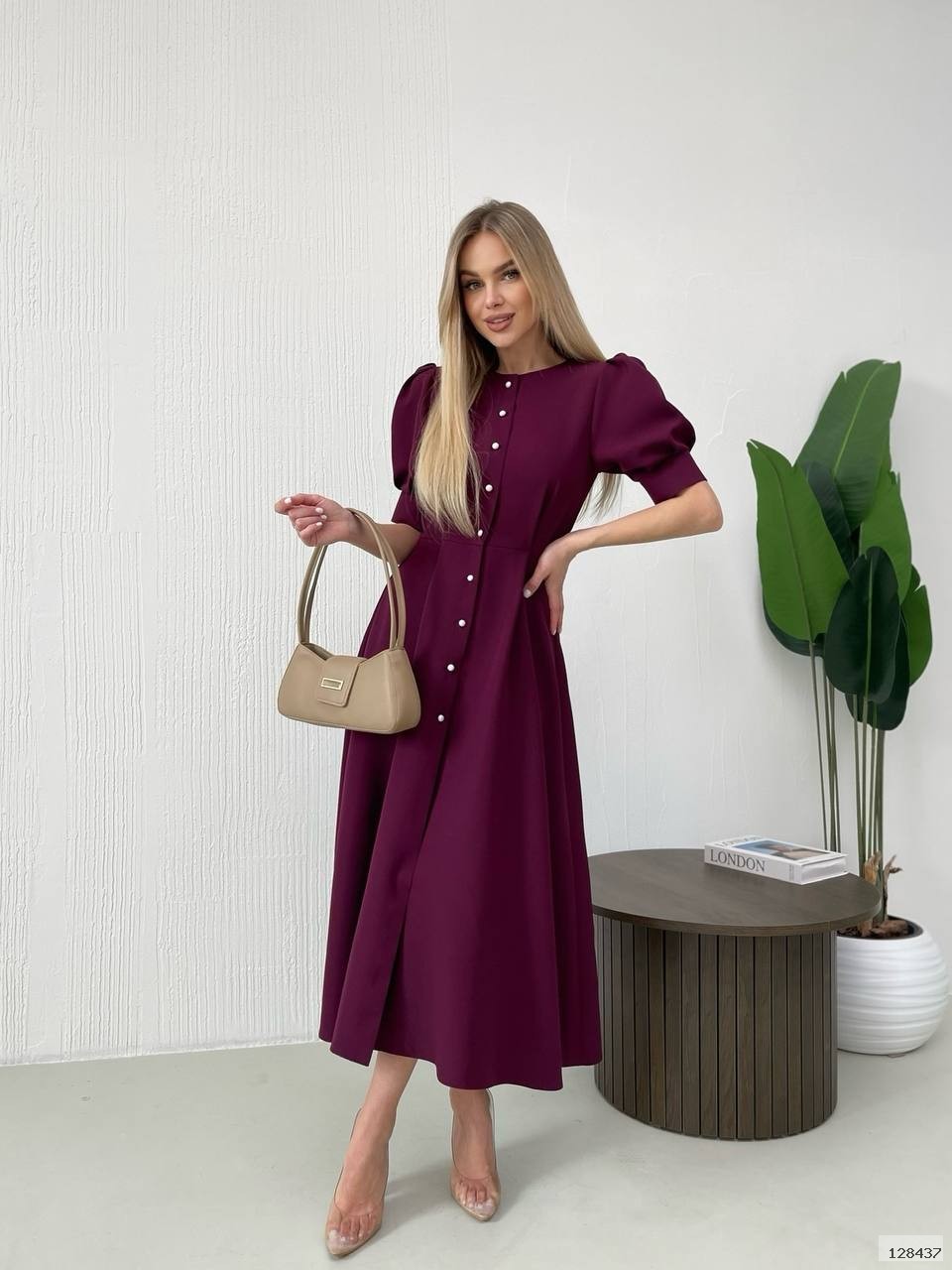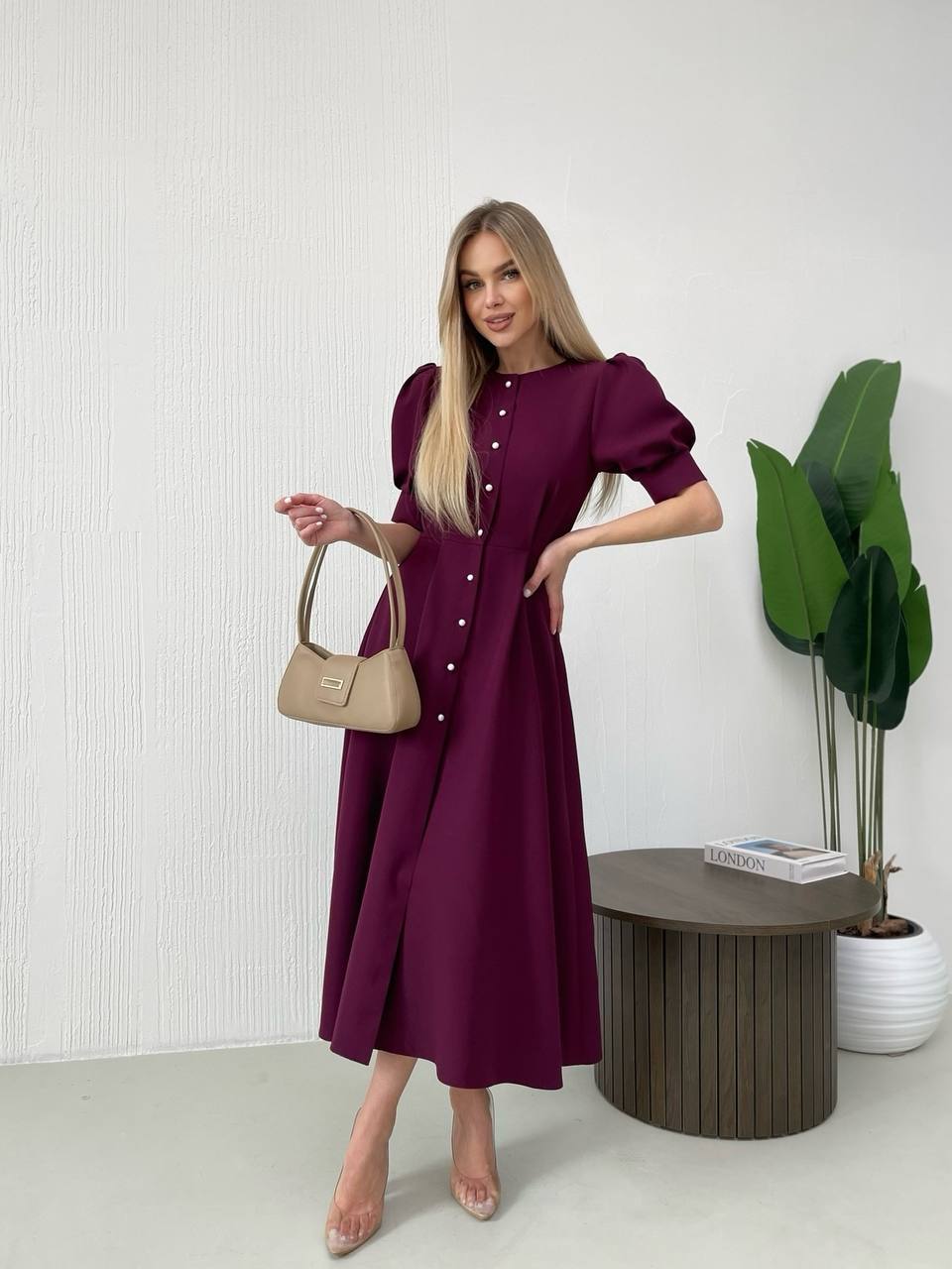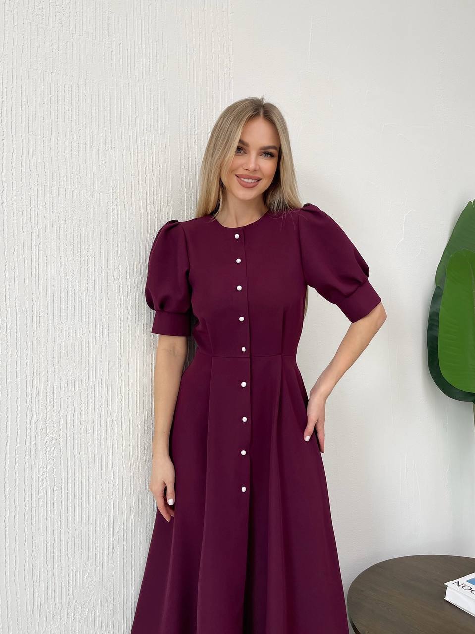 Стильна сукня міді, така жіночна і яскрава. Ґудзики імітація перлів