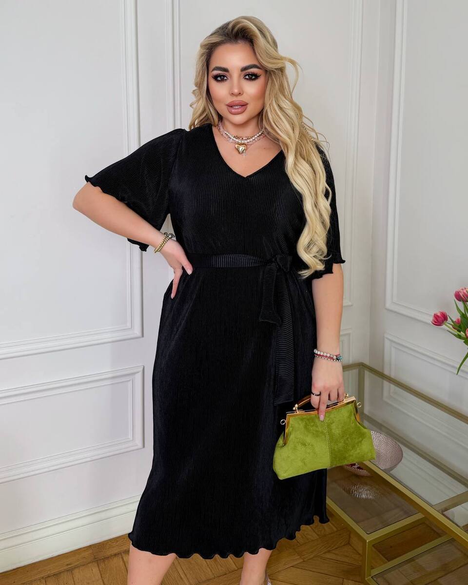 Сукня з тканини пліссе — це ідеальне поєднання легкості, жіночності та елегантності. М’яка плісирована тканина красиво струмує по фігурі, створюючи витончений силует та додаючи образу ніжності.