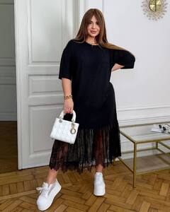 Сукня вільного силуету,зручна та легка у носінні.Низ прикрашений витонченим мереживом,яке додає образу ніжності та жіночності.