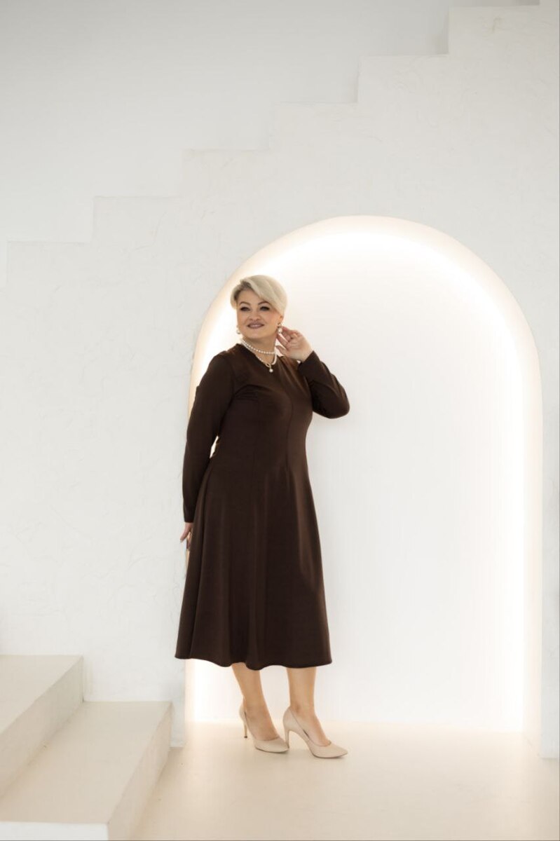 Стильна сукня виконана с двунитки, гарна розтяжність. Універсальна модель та довжина, яка підходить як під кросівки, так і під підбори. Вільний крій з м'яким розширенням від грудей красиво сідає по фігурі, підкреслює талію та акуратно приховує зону живота та стегон.