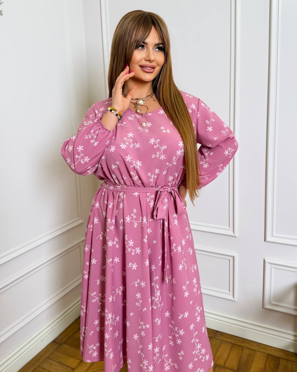 Сукня має вільний крій із акцентом на талії, що підкреслює силует і додає ніжності образу. Довжина міді робить модель універсальною — як для щоденних прогулянок, так і для святкових подій.
