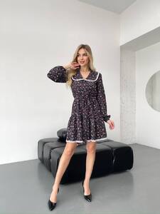 Стильна сукня з цікавим воротом. Пояс у комплекті. Талія на гумці.