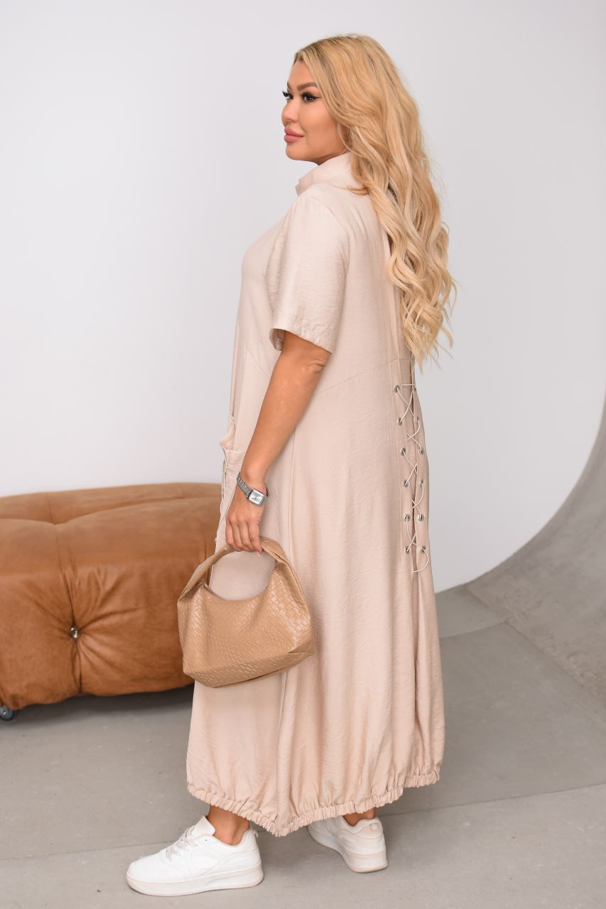 Ззаду — декоративна шнурівка, яка дозволяє регулювати об’єм у талії та формувати силует під себе.