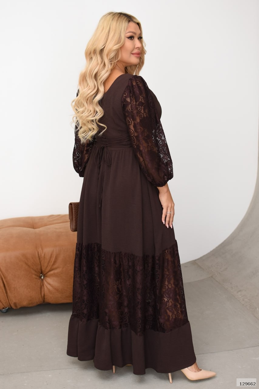 Елегантна комбінована максі-сукня із фактурної жатки та гіпюру. Ідеальний вибір для урочистих подій, романтичних вечорів чи стильних фото!