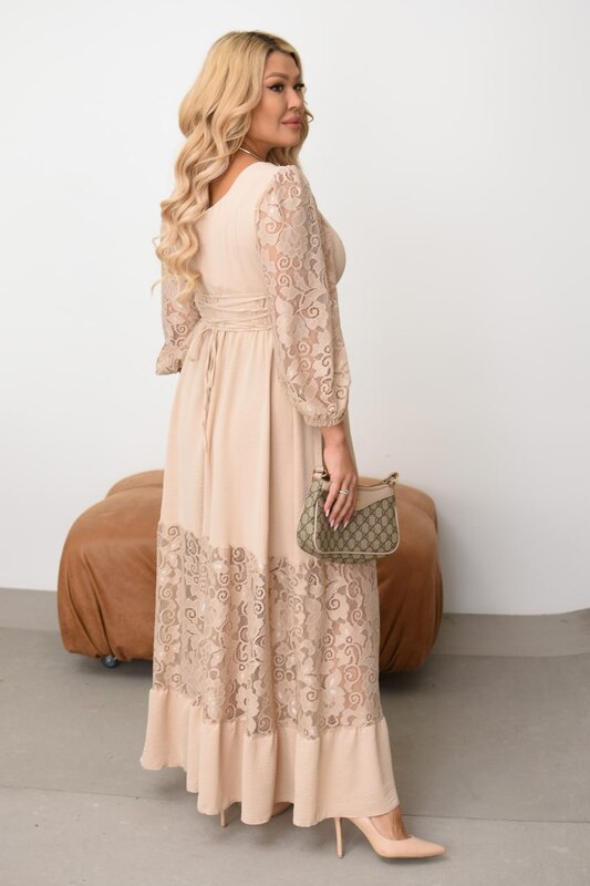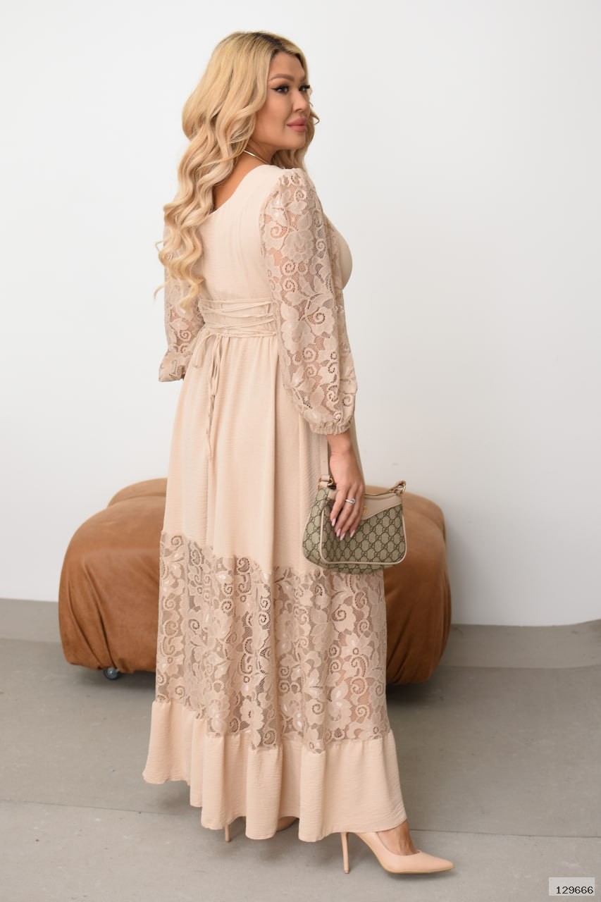 Елегантна комбінована максі-сукня із фактурної жатки та гіпюру. Ідеальний вибір для урочистих подій, романтичних вечорів чи стильних фото!