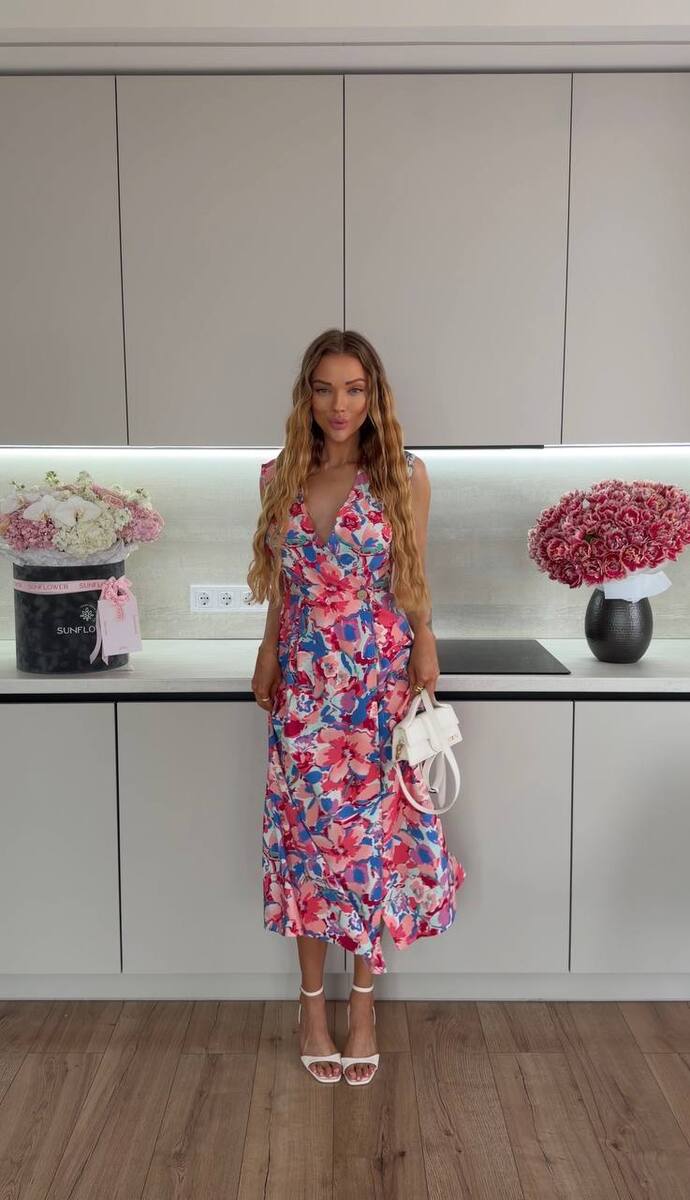 Невагома тканина, квітковий принт, довжина міні та пікантний розріз