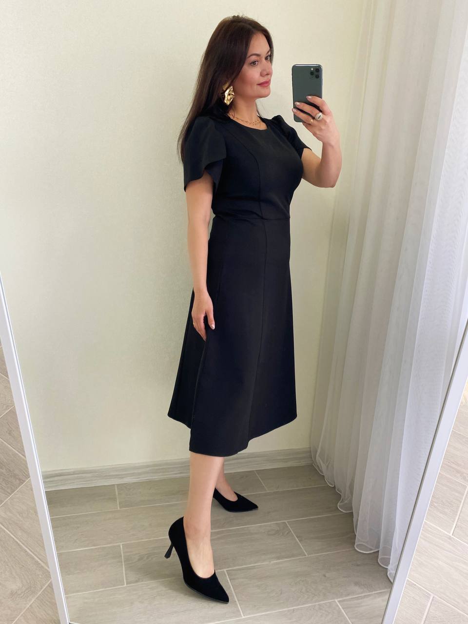 Плаття з приємної тканини, яка трошки тягнеться. Талія відрізна, спідниця сонце-кльош, позаду потайна блискавка.
