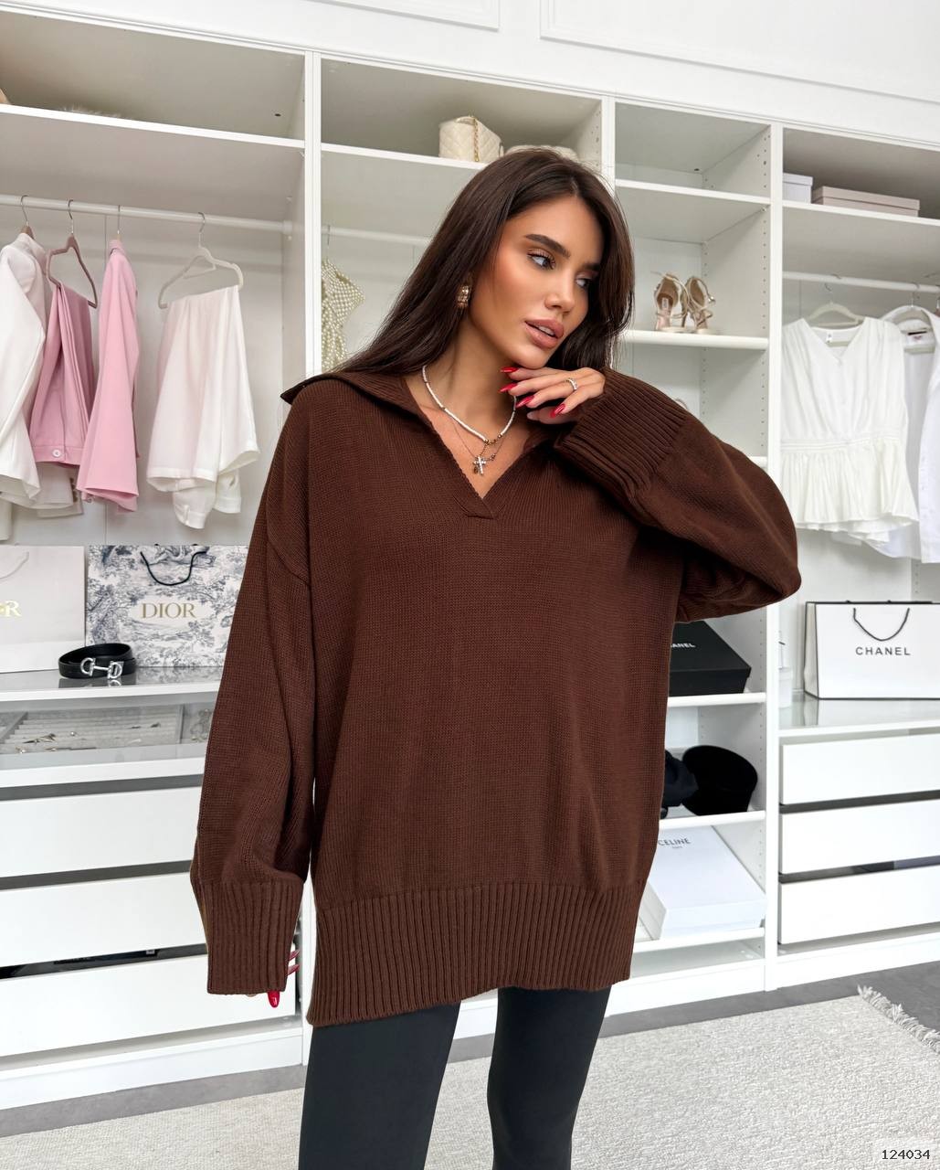 Подовжений светр Oversize з коміром поло