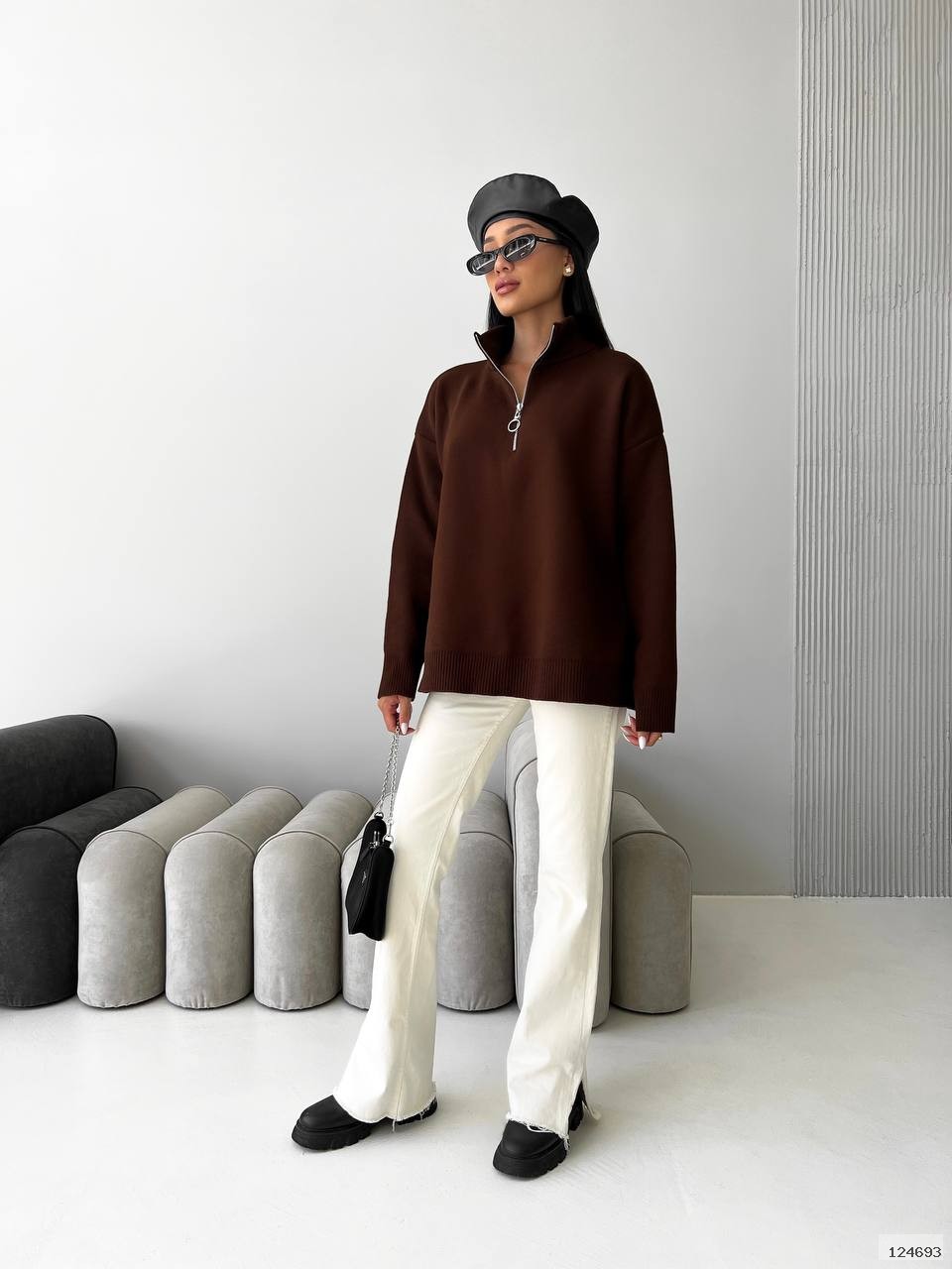 Светр із блискавкою із жакардової в'язки - це унікальне поєднання стилю та комфорту. Ця модель є ідеальним рішенням для тих, хто цінує високу якість і оригінальний дизайн.