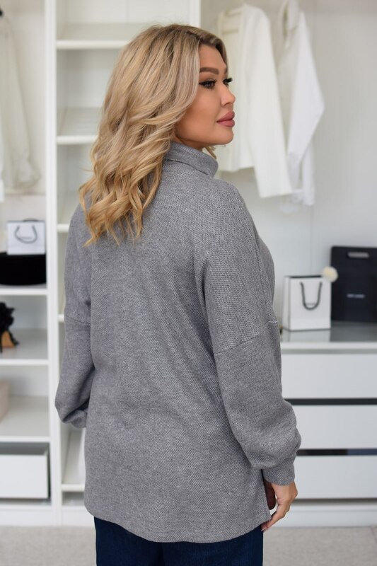 М’який і затишний светр із високим горлом стане вашим улюбленим вибором для прохолодної пори року. Тканина має гарну фактуру "саржеве плетіння", м'яка та приємна на дотик. Підходить для жінок plus-size, які обирають зручність і стиль. Подвійний відворот горла не тисне, спущене плече дарує охайну посадку й комфорт у русі.