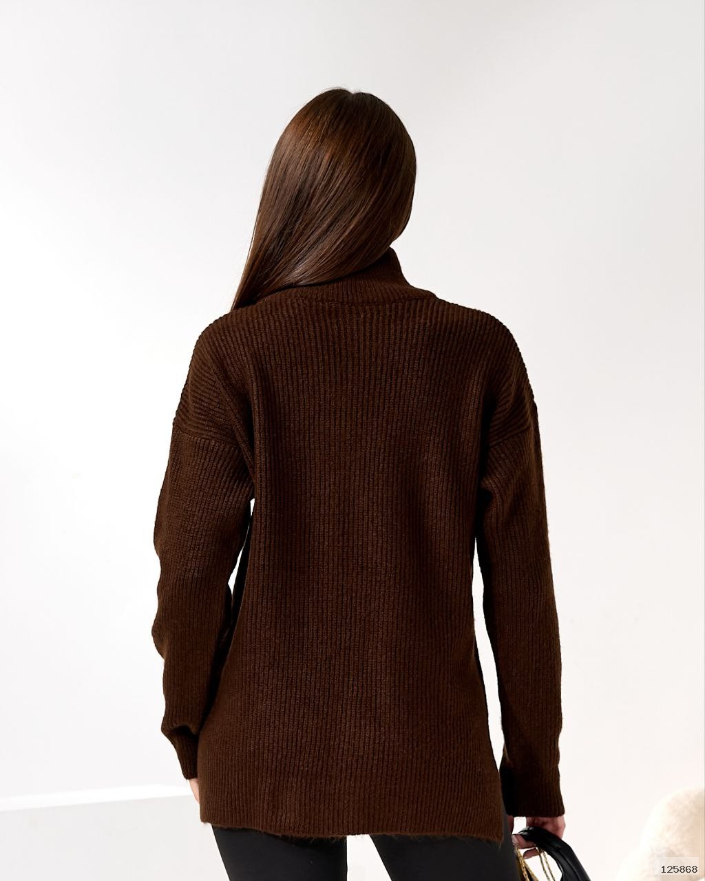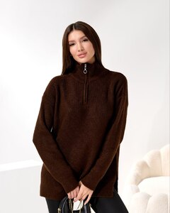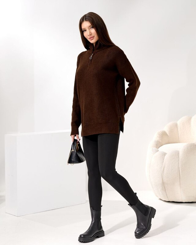 Стильний светр оверсайз. Комір стійка на замочку, по бокам розрізи
