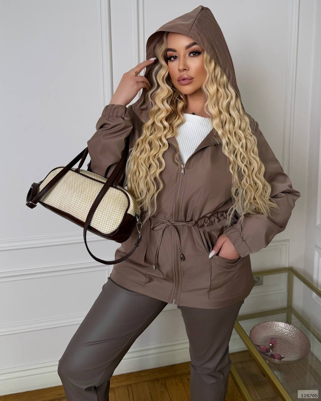 Подовжена вітровка з капюшоном на підкладці. Призначена для захисту від вітру та дрібного дощу в деміісезнну погоду. Застібка на блискавці , накладні кишені з клапаном, резинка по низу рукава, куліска по талії для регулювання.