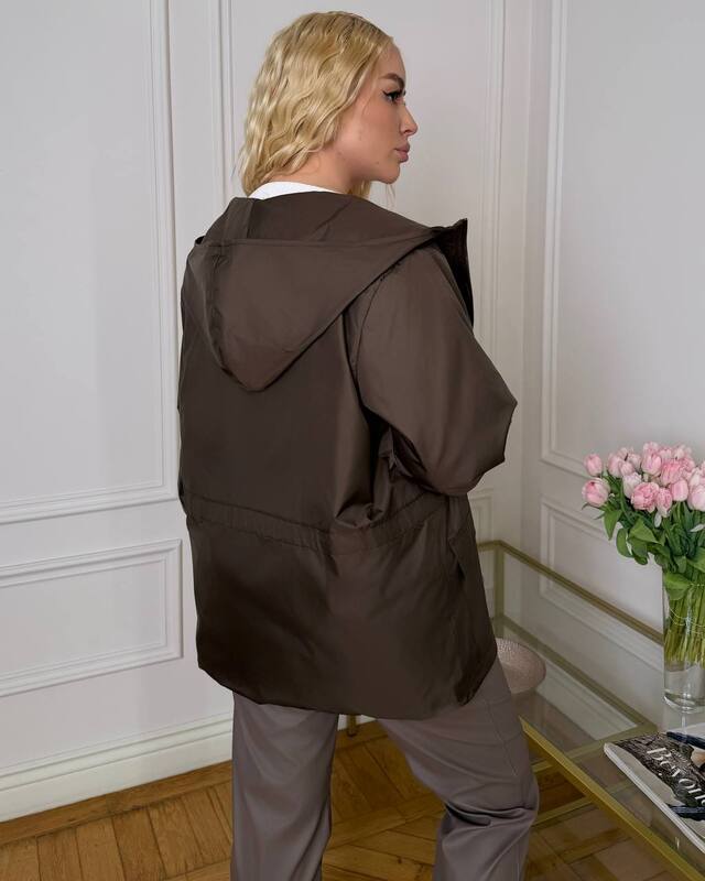 Подовжена вітровка з капюшоном на підкладці. Призначена для захисту від вітру та дрібного дощу в деміісезнну погоду. Застібка на блискавці , накладні кишені з клапаном, резинка по низу рукава, куліска по талії для регулювання.
