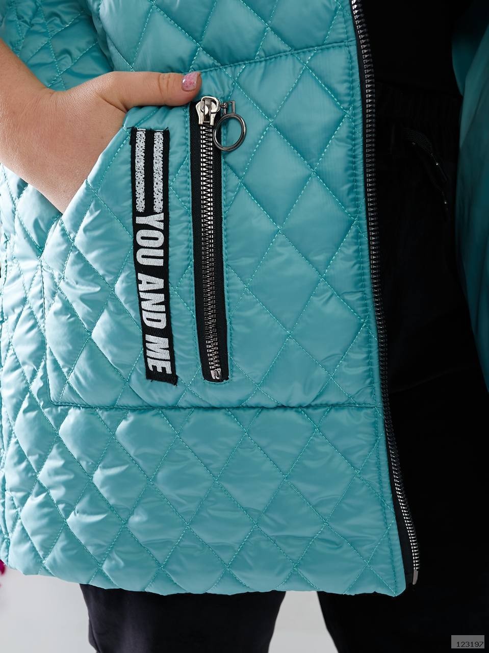 Стильна стьогана жилетка з накладними кишенями, зручний глибокий капюшон, якісна фурнітура.