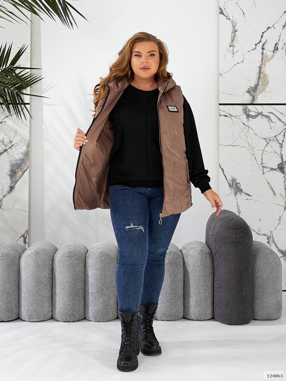 Главная- Женская одежда XL+ (Plus Size)- Верхняя одежда XL+- Жилетки XL+-Жилетка 124863