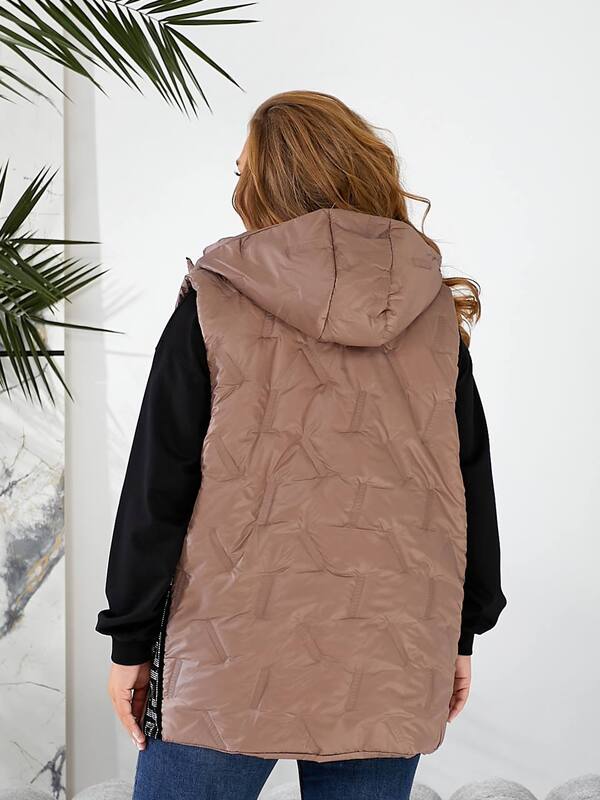 Стильна жилетка прямого крою з кишенями на змійці, зручний глибокий капюшон, декорована лампасами з камінням, якісна фурнітура.